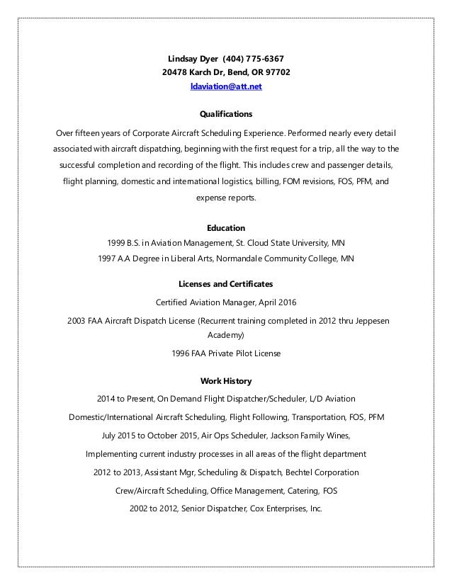 flight dispatcher resume pdf